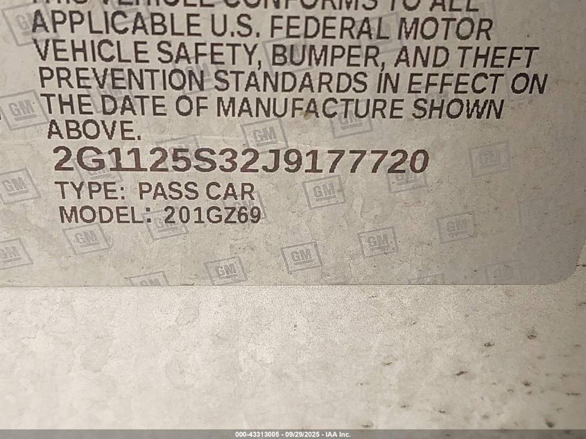 Цвет СинийЦилиндры 6Привод Передний приводVIN 2G1125S32J9177720Состояние Заводится и едет (проверено)Повреждения Передняя левая AutoRIA