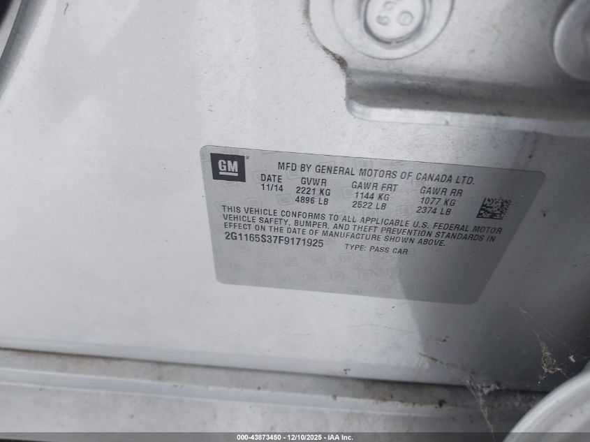 2015 CHEVROLET IMPALA 2015 року Бензин, 3.6, Передний привод, vin - 2G1165S37F9171925 из США