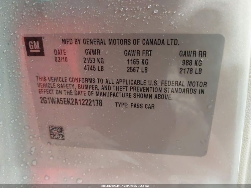 2010 CHEVROLET IMPALA 2010 року Бензин, 3.5, Передний привод, vin - 2G1WA5EK2A1222178 из США