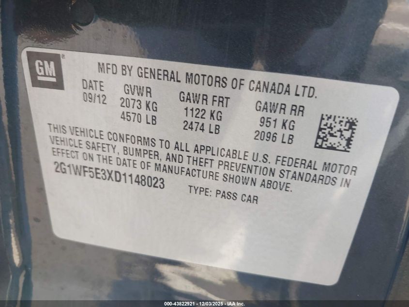 2013 CHEVROLET IMPALA 2013 року Бензин, 3.6, Передний привод, vin - 2G1WF5E3XD1148023 из США