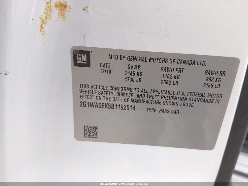 2011 CHEVROLET IMPALA 2011 року Бензин, 3.5, Передний привод, vin - 2G1WA5EK5B1192014 из США