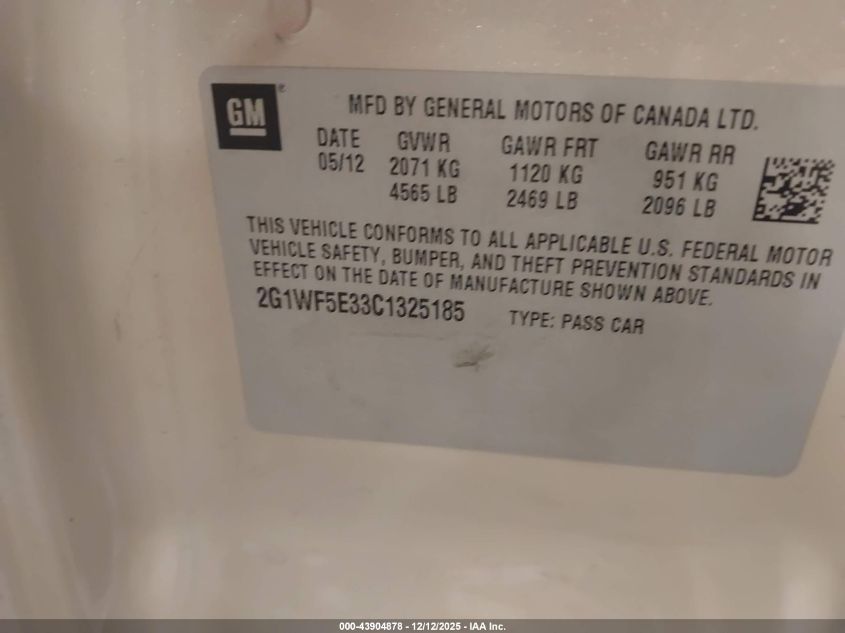 2012 CHEVROLET IMPALA 2012 року Бензин, 3.6, Передний привод, vin - 2G1WF5E33C1325185 из США