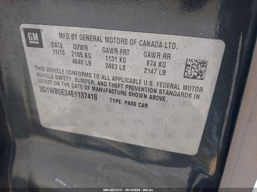 2014 CHEVROLET IMPALA 2014 року Бензин, 3.6, Передний привод, vin - 2G1WB5E34E1137418 из США