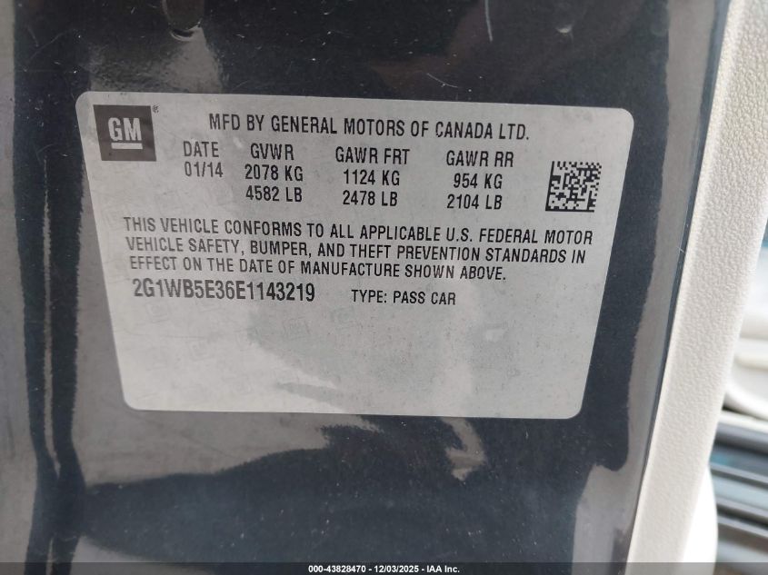 2014 CHEVROLET IMPALA 2014 року Бензин, 3.6, Передний привод, vin - 2G1WB5E36E1143219 из США
