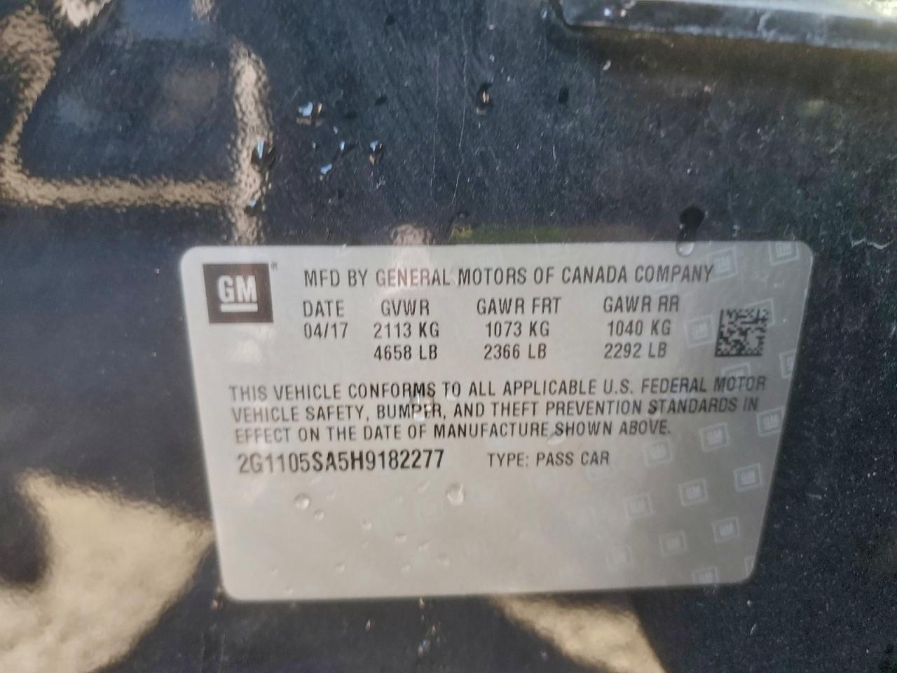 2017 CHEVROLET IMPALA 2017 року Бензин, 2.5, , vin - 2G1105SA5H9182277 из США