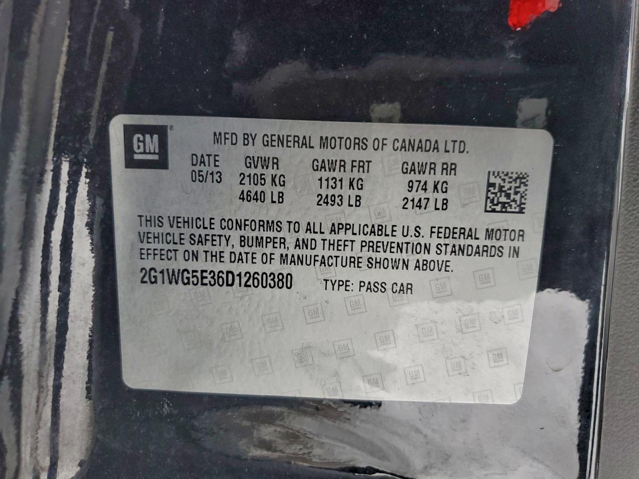 2013 CHEVROLET IMPALA 2013 року Бензин, 3.6, , vin - 2G1WG5E36D1260380 из США