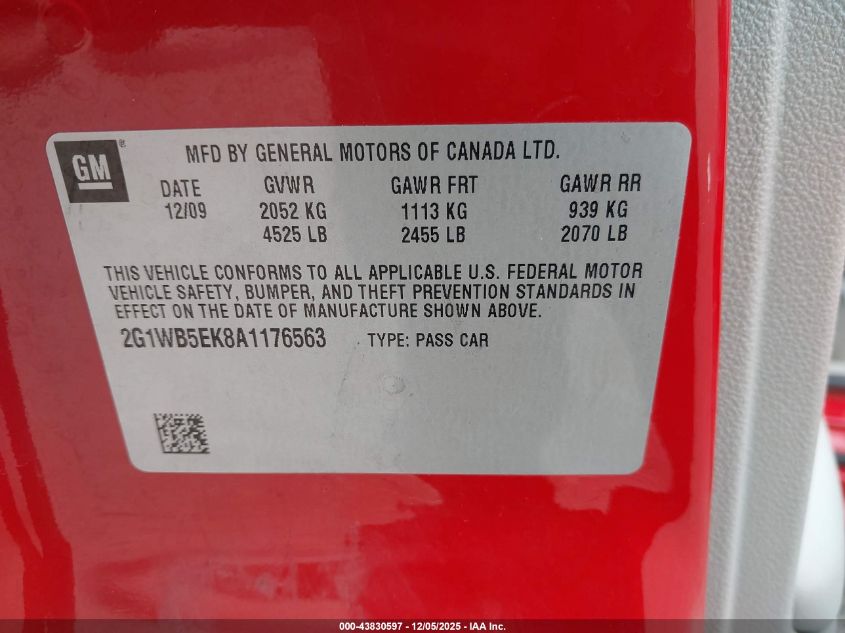 Цвет КрасныйЦилиндры 6Привод Передний приводVIN 2G1WB5EK8A1176563Состояние Заводится и едет (проверено)Повреждения По бокам