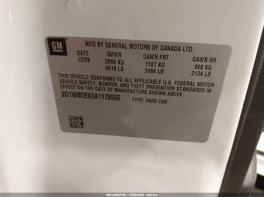 2010 CHEVROLET IMPALA 2010 року Бензин, 3.5, Передний привод, vin - 2G1WB5EK0A1178565 из США