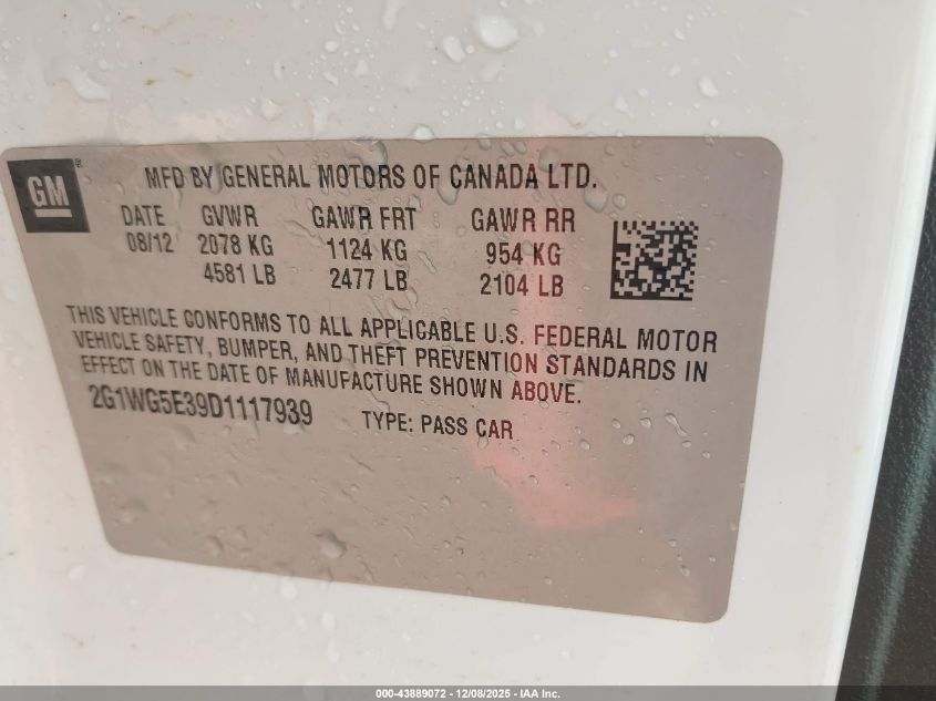 2013 CHEVROLET IMPALA 2013 року Бензин, 3.6, Передний привод, vin - 2G1WG5E39D1117939 из США