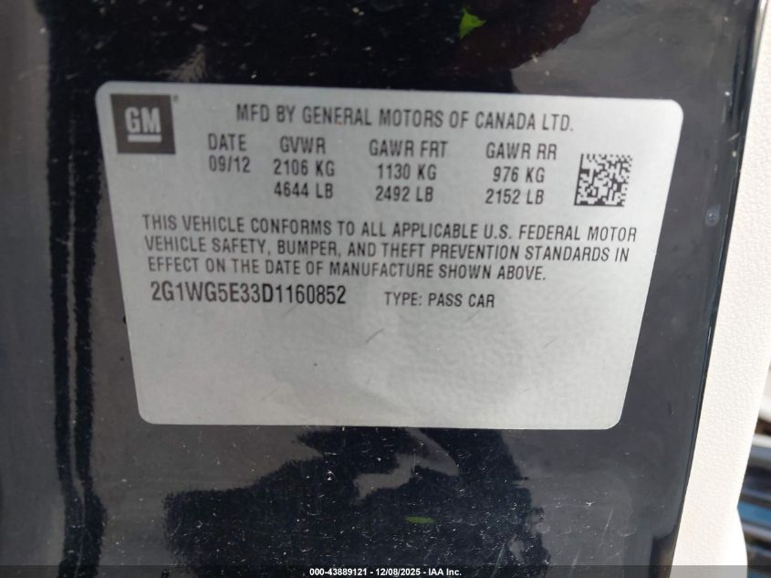 2013 CHEVROLET IMPALA 2013 року Бензин, 3.6, Передний привод, vin - 2G1WG5E33D1160852 из США