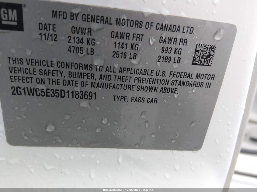 2013 CHEVROLET IMPALA 2013 року Бензин, 3.6, Передний привод, vin - 2G1WC5E35D1183691 из США