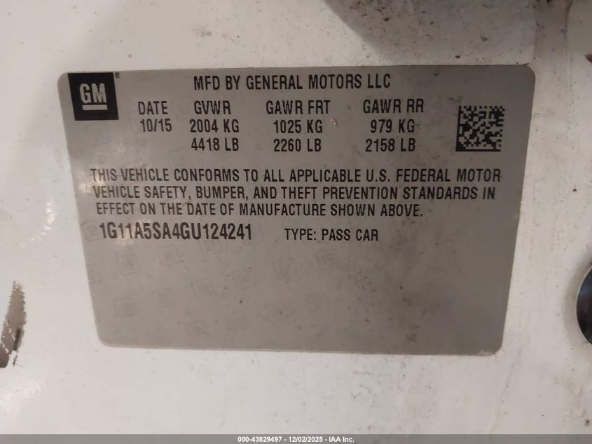 2016 CHEVROLET MALIBU 2016 року Бензин, 2.5, Передний привод, vin - 1G11A5SA4GU124241 из США