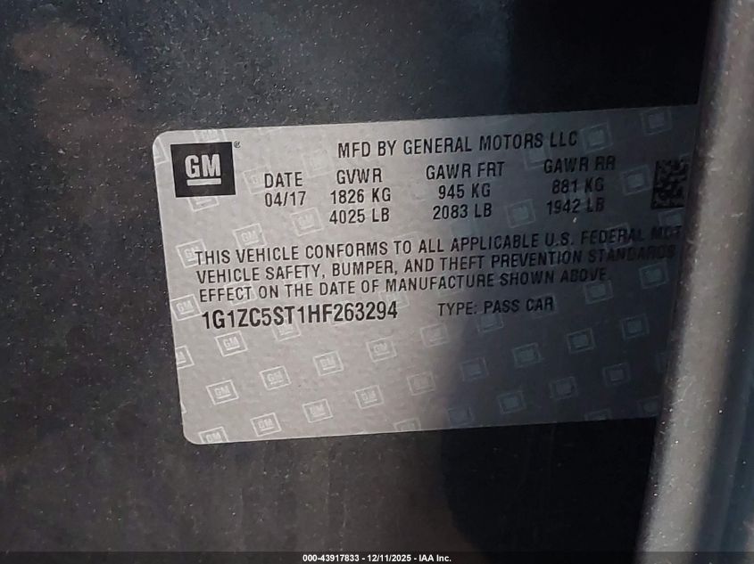 2017 CHEVROLET MALIBU 2017 року Бензин, 1.5, Передний привод, vin - 1G1ZC5ST1HF263294 из США