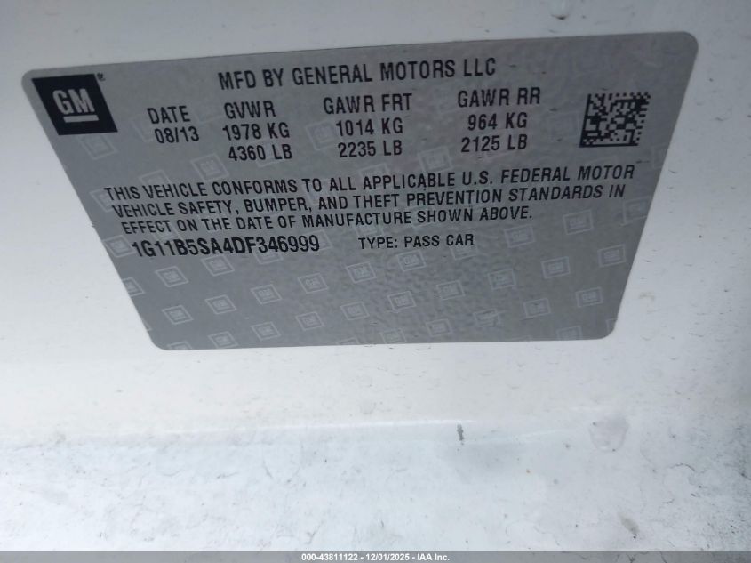 Цвет БелыйЦилиндры 4Привод Передний приводVIN 1G11B5SA4DF346999Состояние СтационарноПовреждения Незначительные AutoRIA