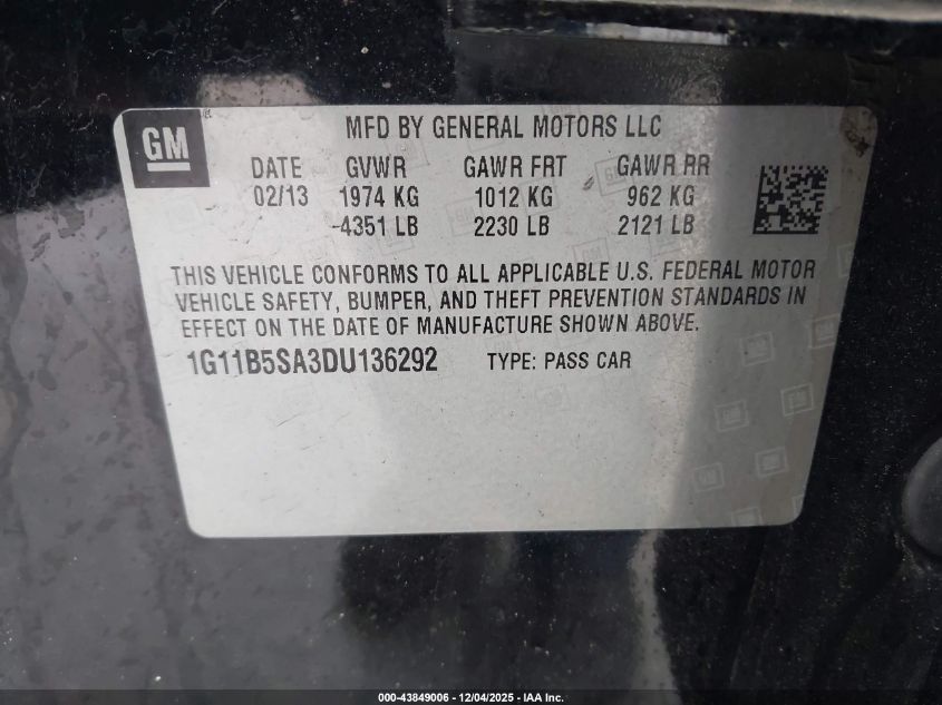 Цвет ЧерныйЦилиндры 4Привод Передний приводVIN 1G11B5SA3DU136292Состояние СтационарноПовреждения Передняя или задняя AutoRIA