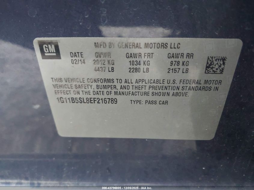 Цвет СинийЦилиндры 4Привод Передний приводVIN 1G11B5SL8EF216789Состояние СтационарноПовреждения Передняя или задняя AutoRIA