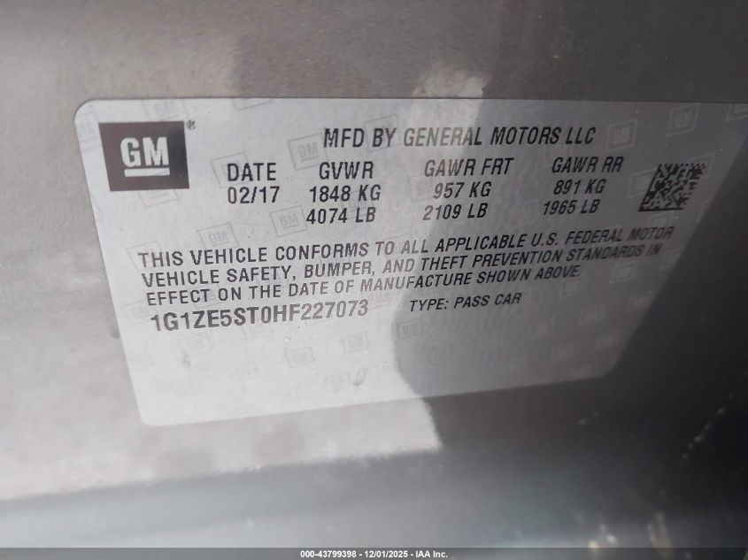 2017 CHEVROLET MALIBU 2017 року Бензин, 1.5, Передний привод, vin - 1G1ZE5ST0HF227073 из США