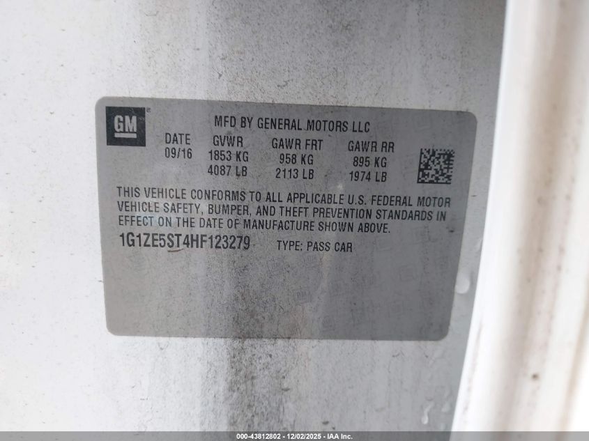 2017 CHEVROLET MALIBU 2017 року Бензин, 1.5, Передний привод, vin - 1G1ZE5ST4HF123279 из США