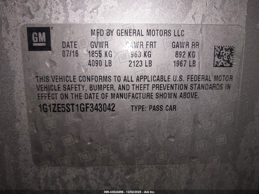 2016 CHEVROLET MALIBU 2016 року Бензин, 1.5, Передний привод, vin - 1G1ZE5ST1GF343042 из США