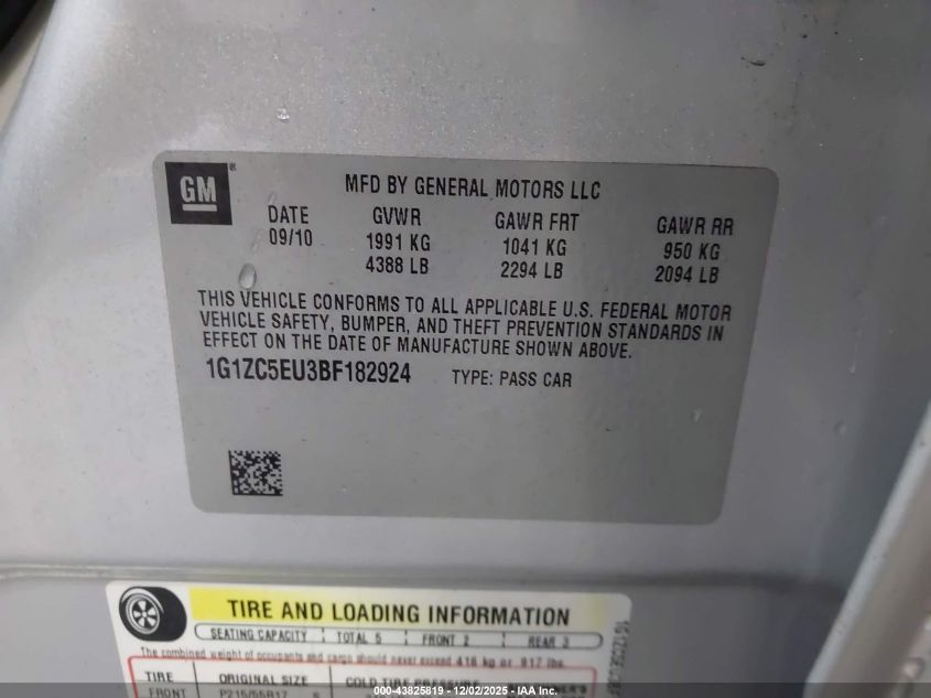 2011 CHEVROLET MALIBU 2011 року Бензин, 2.4, Передний привод, vin - 1G1ZC5EU3BF182924 из США