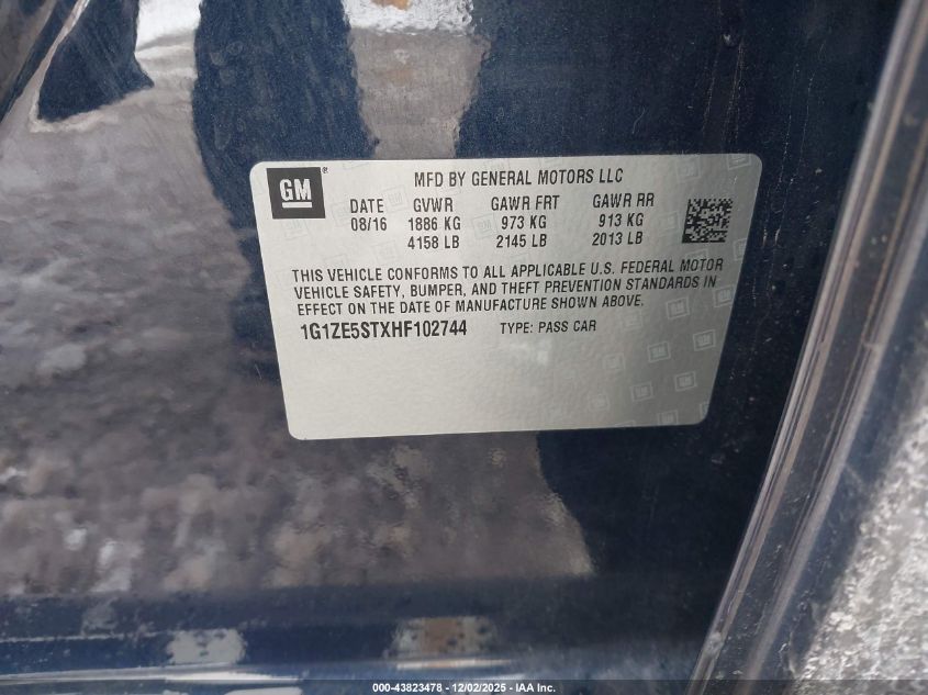 2017 CHEVROLET MALIBU 2017 року Бензин, 1.5, Передний привод, vin - 1G1ZE5STXHF102744 из США