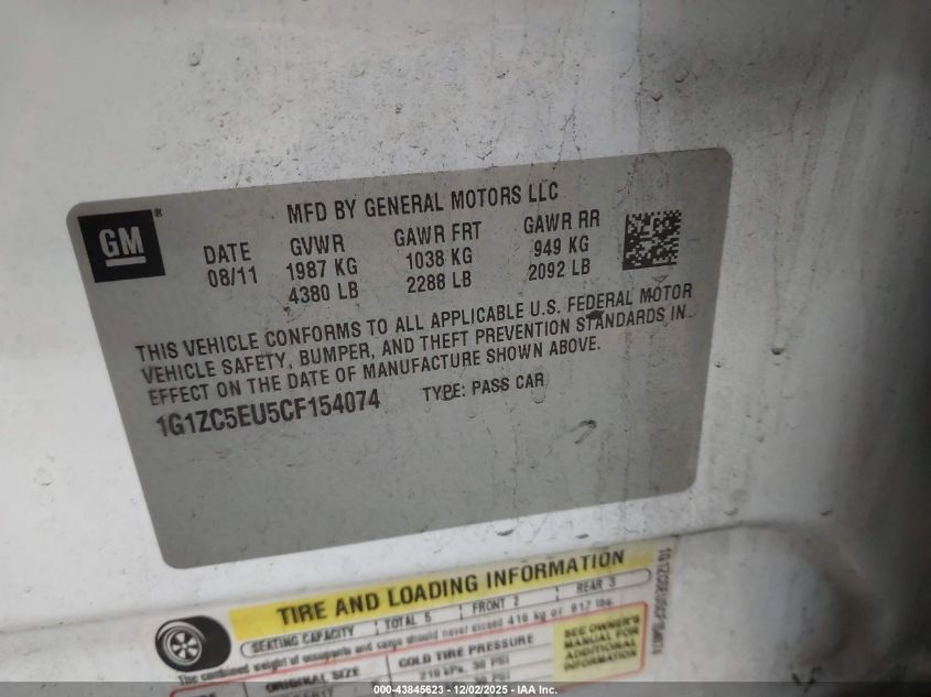 Цвет БелыйЦилиндры 4Привод Передний приводVIN 1G1ZC5EU5CF154074Состояние Заводится и едет (проверено)Повреждения Левая сторона AutoRIA