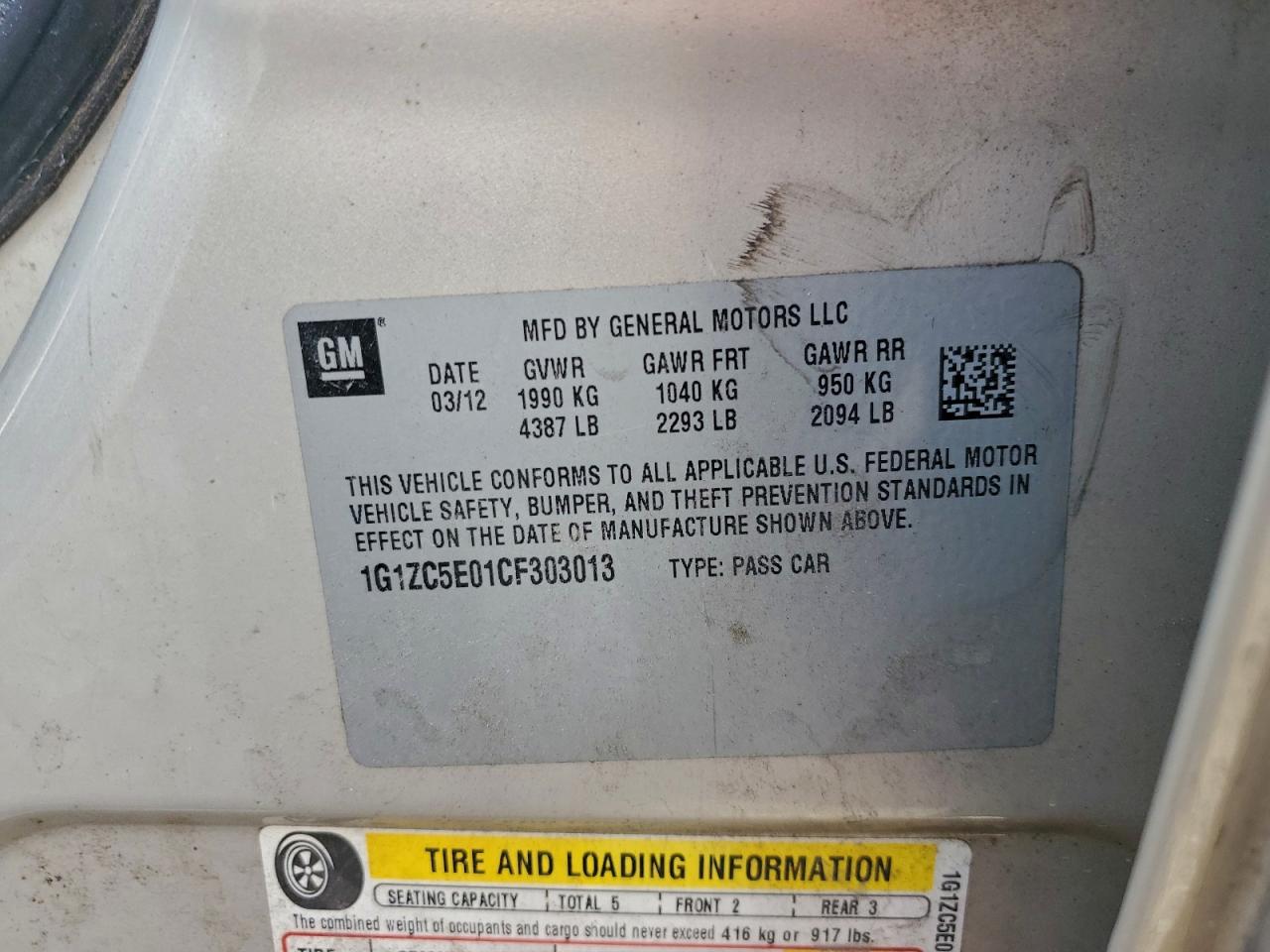 Цвет БежевыйЦилиндры 4VIN 1G1ZC5E01CF303013Состояние Заводится и едет (проверено)Повреждения Задняя AutoRIA