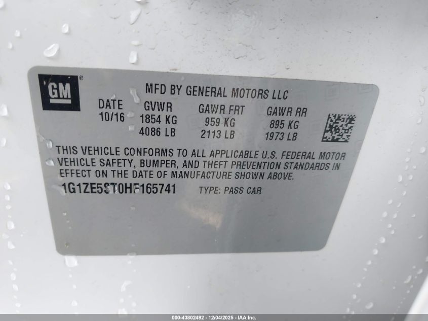 2017 CHEVROLET MALIBU 2017 року Бензин, 1.5, Передний привод, vin - 1G1ZE5ST0HF165741 из США