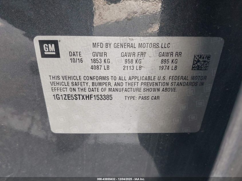 2017 CHEVROLET MALIBU 2017 року Бензин, 1.5, Передний привод, vin - 1G1ZE5STXHF153385 из США