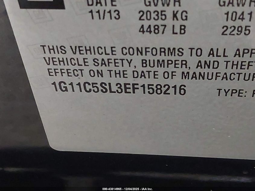 Цвет ЧерныйЦилиндры 4Привод Передний приводVIN 1G11C5SL3EF158216Состояние СтационарноПовреждения Незначительные AutoRIA