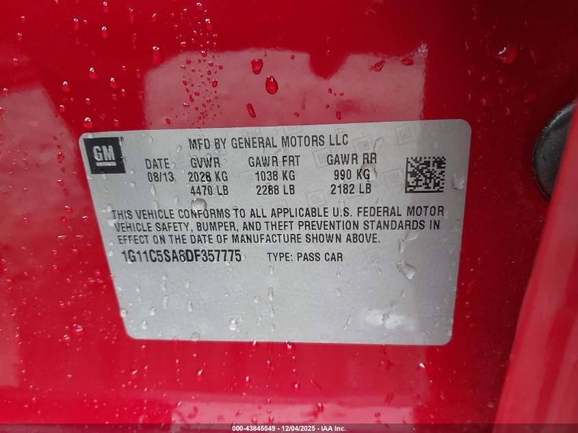 2013 CHEVROLET MALIBU 2013 року Бензин, 2.5, Передний привод, vin - 1G11C5SA8DF357775 из США
