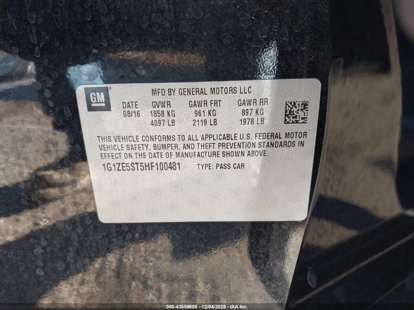 2017 CHEVROLET MALIBU 2017 року Бензин, 1.5, Передний привод, vin - 1G1ZE5ST5HF100481 из США