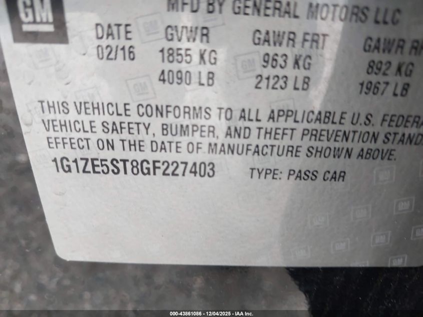 2016 CHEVROLET MALIBU 2016 року Бензин, 1.5, Передний привод, vin - 1G1ZE5ST8GF227403 из США