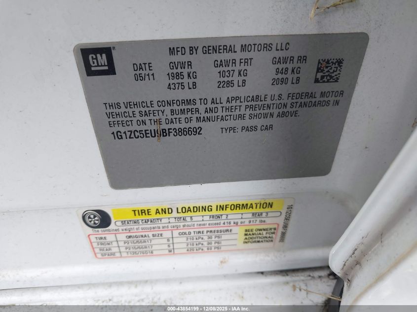 2011 CHEVROLET MALIBU 2011 року Бензин, 2.4, Передний привод, vin - 1G1ZC5EU9BF386692 из США