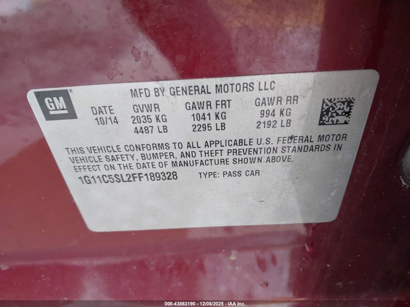2015 CHEVROLET MALIBU 2015 року Бензин, 2.5, Передний привод, vin - 1G11C5SL2FF189328 из США
