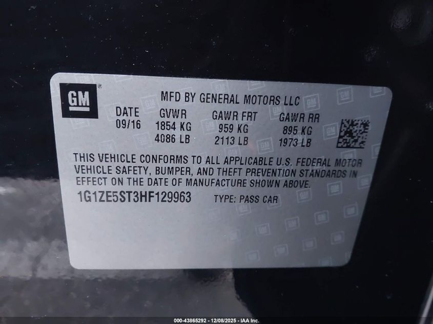 2017 CHEVROLET MALIBU 2017 року Бензин, 1.5, Передний привод, vin - 1G1ZE5ST3HF129963 из США