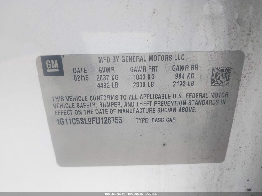 2015 CHEVROLET MALIBU 2015 року Бензин, 2.5, Передний привод, vin - 1G11C5SL9FU126755 из США