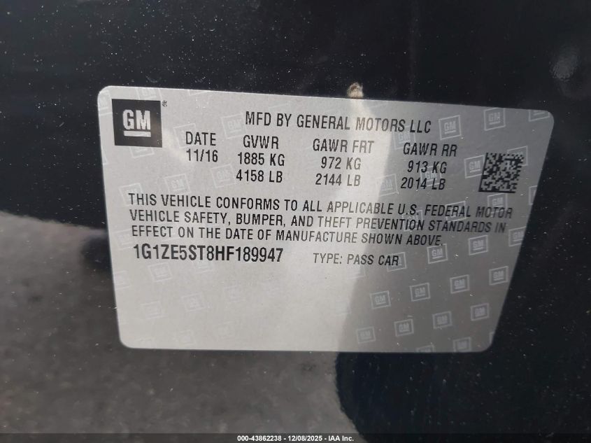 2017 CHEVROLET MALIBU 2017 року Бензин, 1.5, Передний привод, vin - 1G1ZE5ST8HF189947 из США