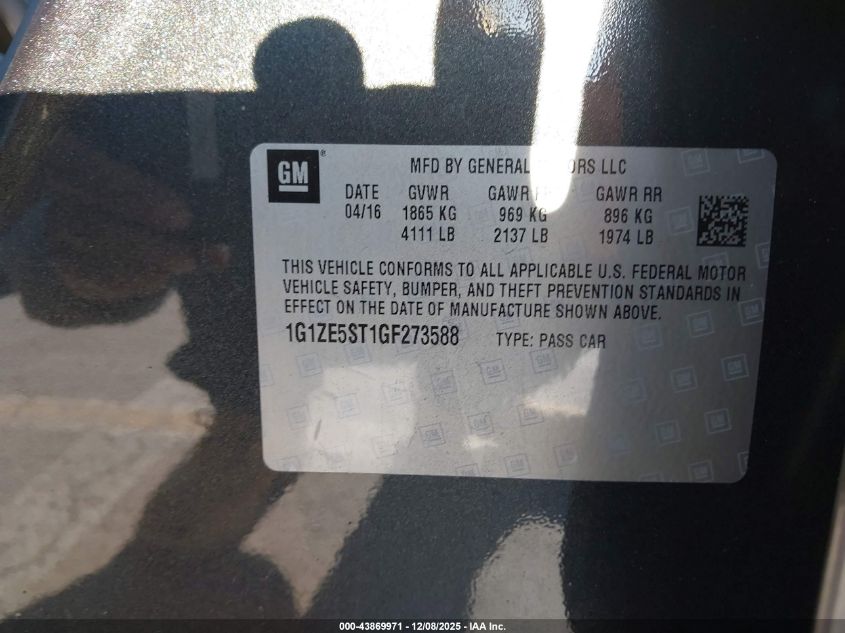 2016 CHEVROLET MALIBU 2016 року Бензин, 1.5, Передний привод, vin - 1G1ZE5ST1GF273588 из США