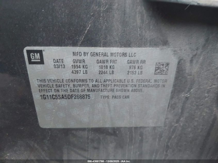 Цвет СерыйЦилиндры 4Привод Передний приводVIN 1G11C5SA5DF268875Состояние Заводится и едет (проверено)Повреждения Левая сторона AutoRIA