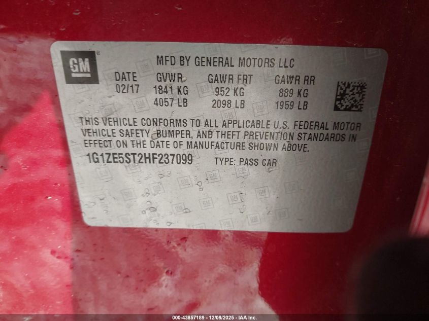 2017 CHEVROLET MALIBU 2017 року Бензин, 1.5, Передний привод, vin - 1G1ZE5ST2HF237099 из США