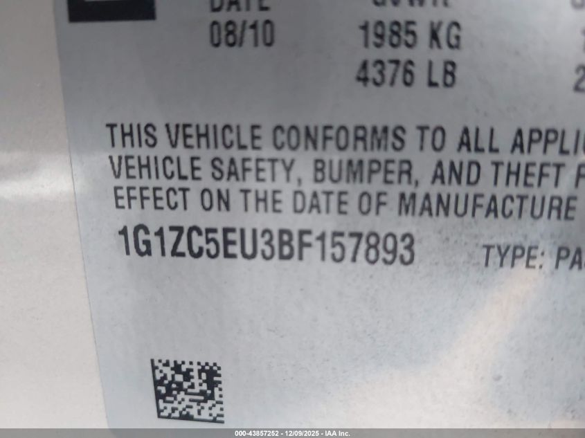 2011 CHEVROLET MALIBU 2011 року Бензин, 2.4, Передний привод, vin - 1G1ZC5EU3BF157893 из США