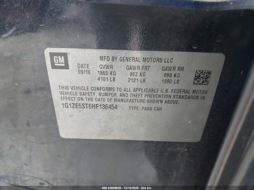 2017 CHEVROLET MALIBU 2017 року Бензин, 1.5, Передний привод, vin - 1G1ZE5ST6HF136454 из США