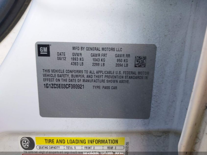 2012 CHEVROLET MALIBU 2012 року Бензин, 2.4, Передний привод, vin - 1G1ZC5E03CF380921 из США