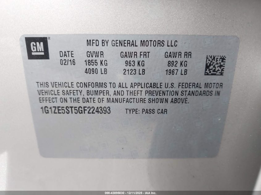 2016 CHEVROLET MALIBU 2016 року Бензин, 1.5, Передний привод, vin - 1G1ZE5ST5GF224393 из США