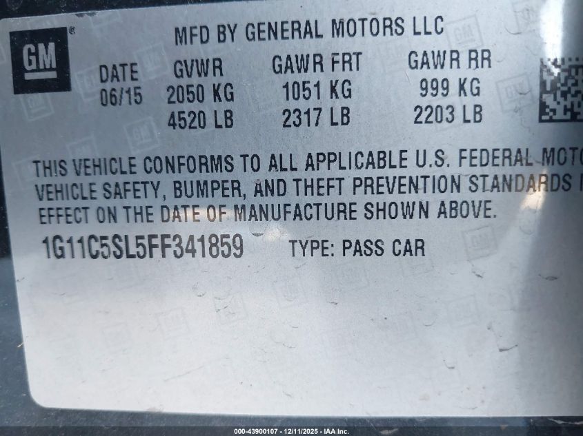 2015 CHEVROLET MALIBU 2015 року Бензин, 2.5, Передний привод, vin - 1G11C5SL5FF341859 из США
