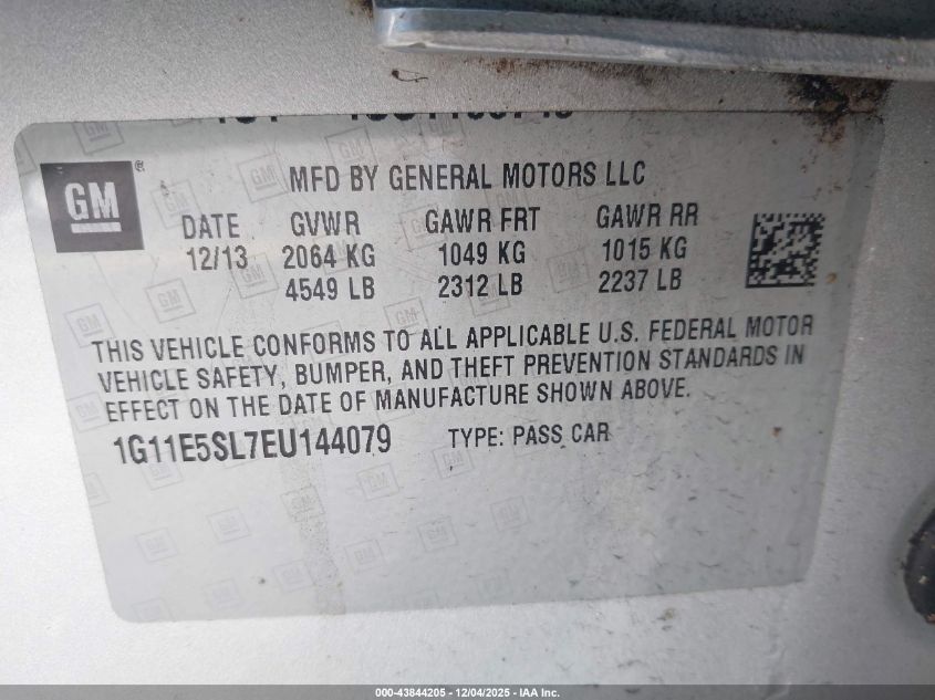 Цвет СеребряныйЦилиндры 4Привод Передний приводVIN 1G11E5SL7EU144079Состояние СтационарноПовреждения Био/Химические AutoRIA