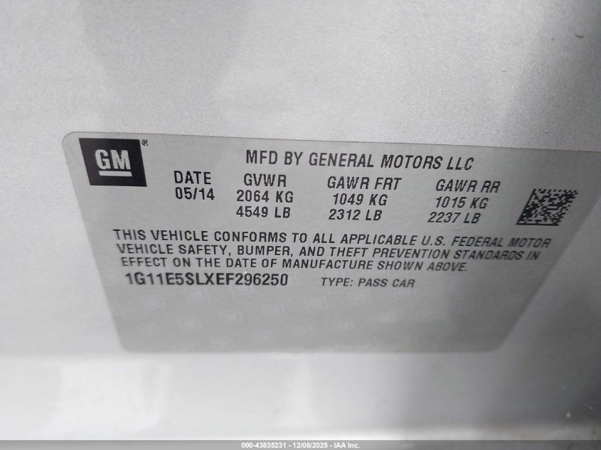Цвет СерыйЦилиндры 4Привод Передний приводVIN 1G11E5SLXEF296250Состояние СтационарноПовреждения Передняя или задняя AutoRIA