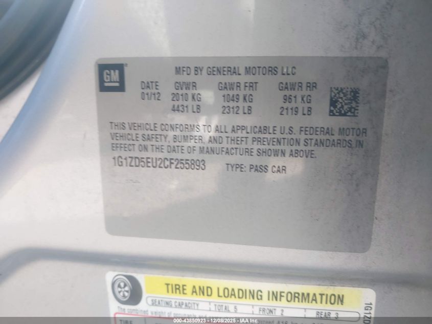 Цвет СеребряныйЦилиндры 4Привод Передний приводVIN 1G1ZD5EU2CF255893Состояние СтационарноПовреждения Обычный износ AutoRIA