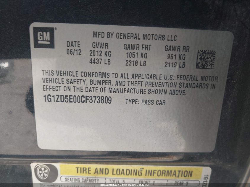 2012 CHEVROLET MALIBU 2012 року Бензин, 2.4, Передний привод, vin - 1G1ZD5E00CF373809 из США